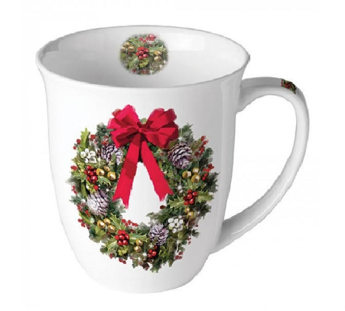 Ambiente karácsonyi porcelánbögre - Bow On Wreath - 400 ml