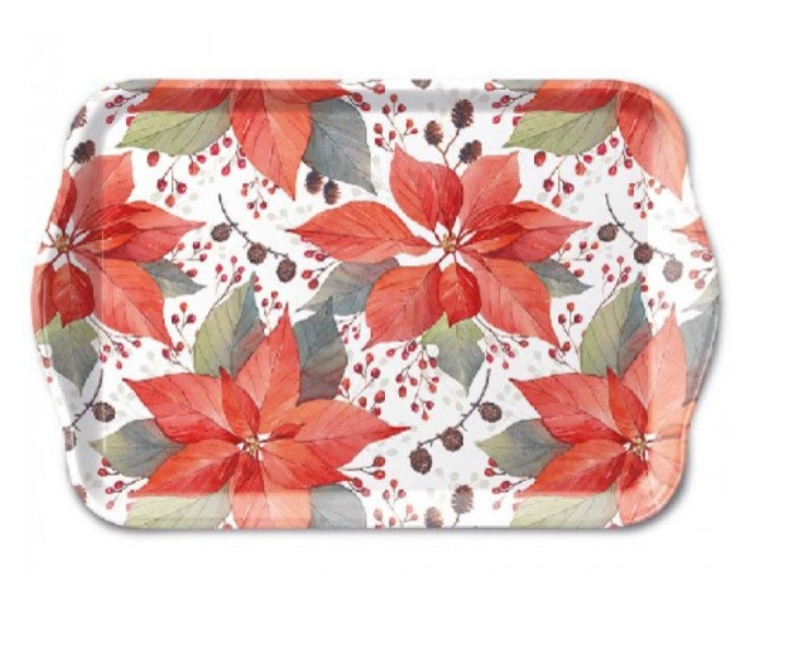 Ambiente karácsonyi tálca - Poinsettia And Berries - 13x21 cm