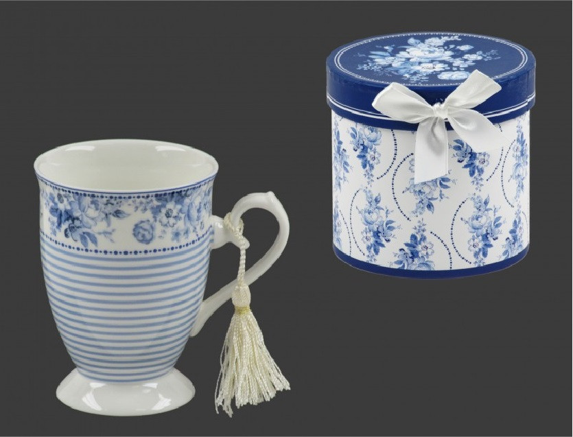 Bögre kék csíkos virágos díszdobozban - 250 ml