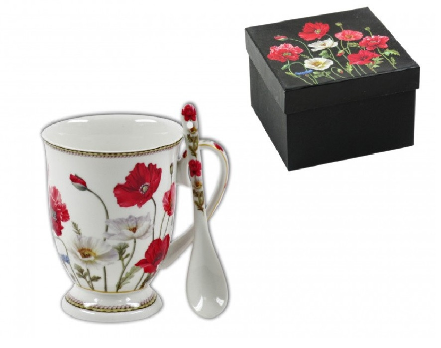 Bögre+kiskanál diszdobozos - Pipacs - 280 ml