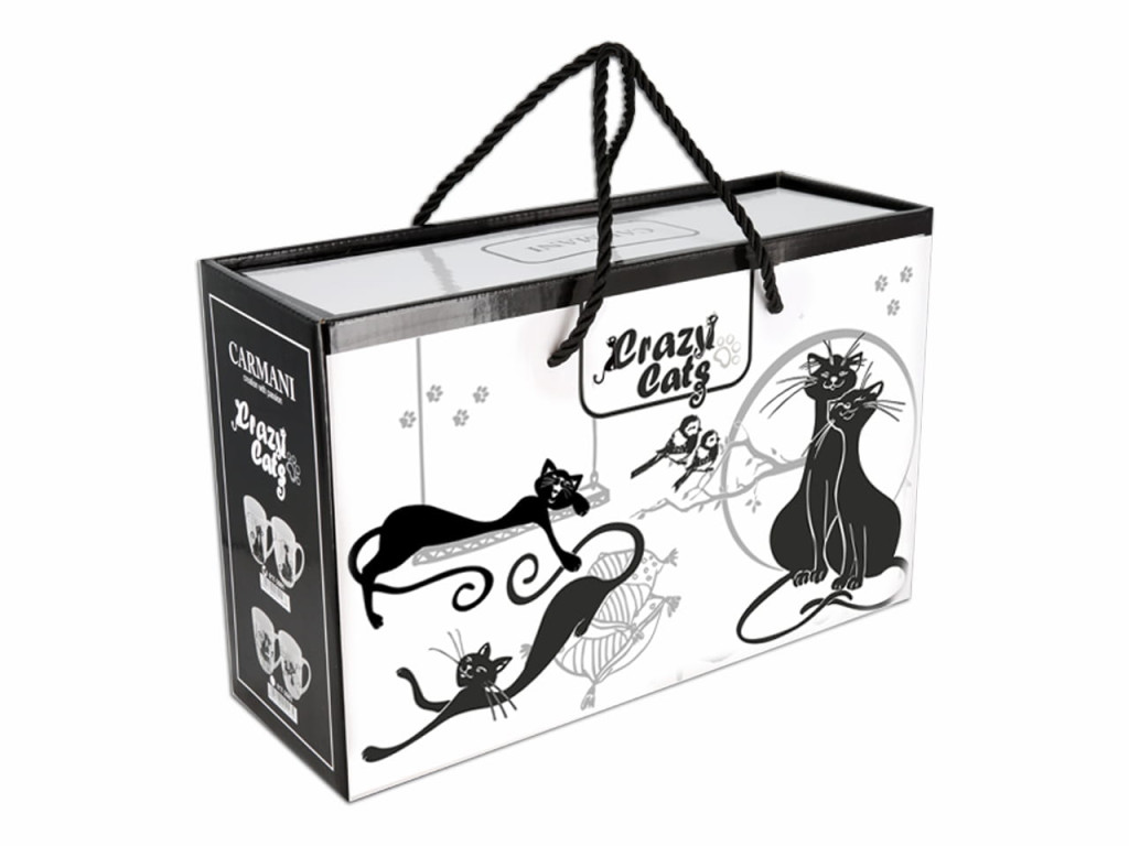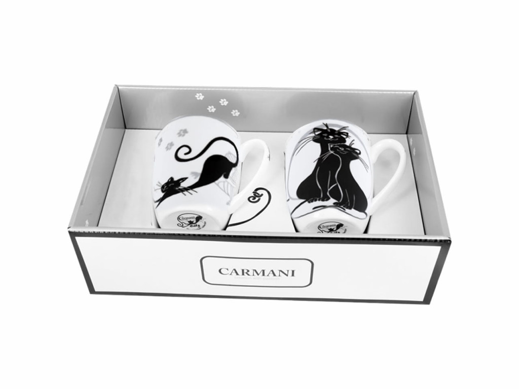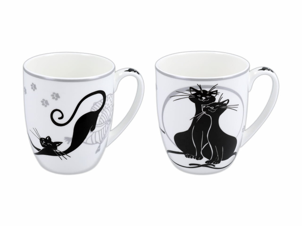 Carmani porcelán bögre - Fekete macskás - 400 ml - 2 db-os szett