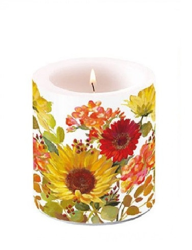 Ambiente - Sunny Flowers Cream - átvilágítós gyertya - 8x7,5 cm