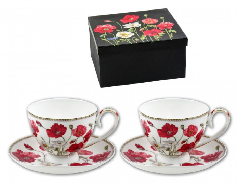Teáscsésze 250ml +alátét 2+2db fehér pipacsos díszdobozban