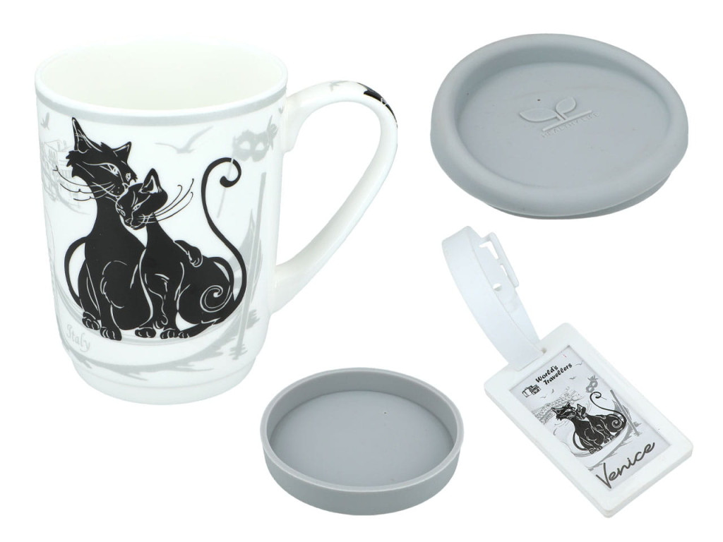 Carmani porcelán utazóbögre - London fekete macska - 320 ml